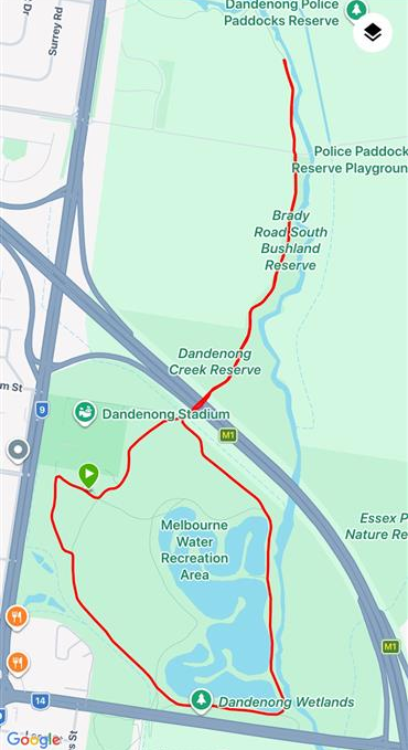 The 5km event course is an inviting single‑lap course designed for runners and walkers of all abilities, combining a fast, flat creek‑side stretch with a picturesque wetlands loop to finish. Starting at the main event hub area outside Dandenong Stadium, participants head out along the shared path and head towards the tunnel beneath the M1, emerging onto the peaceful Dandenong Creek Trail. From here, runners follow the trail along, crossing Brady Road and continuing only a short distance further before reaching the designated turnaround point a few hundred metres beyond the crossing.